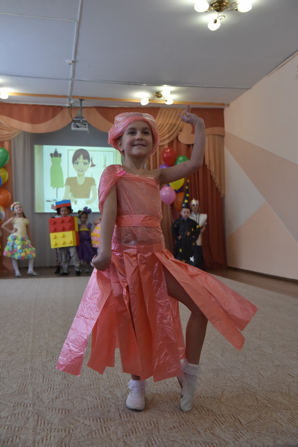 Гости и сами были вовлечены в увлекательную игру в профессии – побывали в парикмахерской, швейной и художественной мастерских, электротехнической лаборатории (помощниками дошколятам выступили студенты-электрики второго курса машиностроительной площадки ЗлатИКа им. П. П. Аносова) и даже стали зрителями дизайнерского показа. Дети вместе с родителями сделали шикарные костюмы из подручных средств. В ход шли игральные карты, бумажные салфетки, мешки для мусора, пластиковые стаканчик, рекламные листовки и и другие материалы, которым в повседневной жизни мы не придаем особого значения. Зато какие получились наряды: хоть сейчас – на подиум!